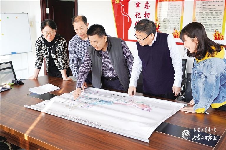 國土空間規(guī)劃局的工作人員正在研究全區(qū)生態(tài)保護紅線劃定工作。內(nèi)蒙古日報社融媒體記者 王連英 攝