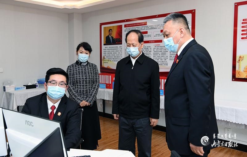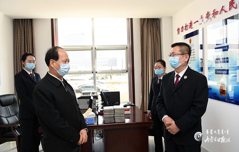 3月29日下午,自治區(qū)黨委書記、人大常委會主任石泰峰在呼和浩特市賽罕區(qū)人民法院,了解該院開展教育整頓和整改優(yōu)化訴訟服務(wù)等情況。內(nèi)蒙古日報社融媒體記者 袁永紅 攝