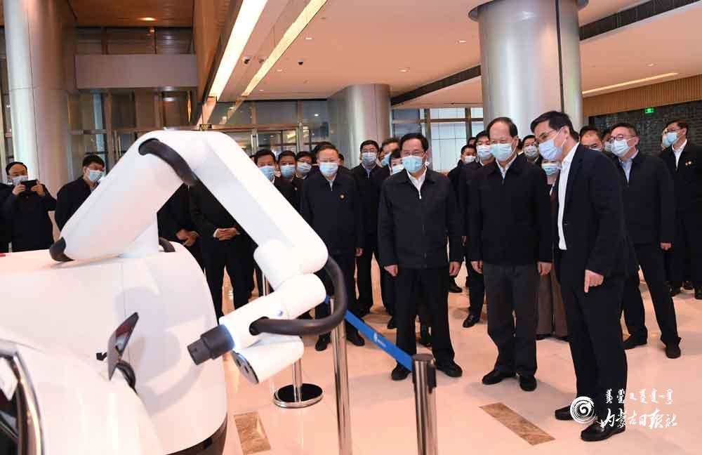 4月19日,自治區(qū)黨委書記、人大常委會主任石泰峰率內(nèi)蒙古黨政考察團在遠景科技集團學習考察。內(nèi)蒙古日報社融媒體記者 袁永紅 攝