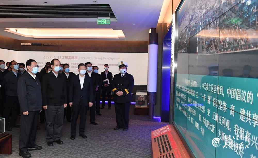 4月19日,自治區(qū)黨委書記、人大常委會主任石泰峰率內(nèi)蒙古黨政考察團在中國遠洋海運集團學習考察。內(nèi)蒙古日報社融媒體記者 袁永紅 攝