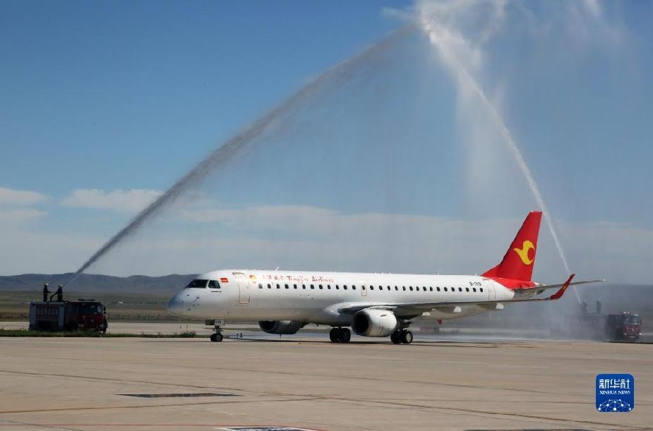 錫林浩特直飛烏蘭浩特航班舉行過(guò)水門(mén)儀式。新華社記者李云平攝