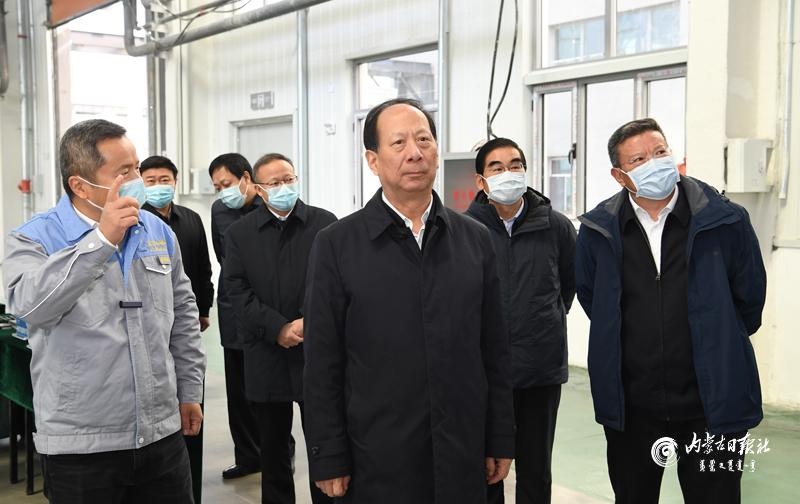 深秋將盡,土右旗新型工業(yè)園區(qū)新特能源高純多晶硅項(xiàng)目施工現(xiàn)場(chǎng)依然熱火朝天,平均每天都有數(shù)千名工人加班加點(diǎn)施工作業(yè)。石泰峰一走進(jìn)項(xiàng)目工地,就被這里如火如荼的建設(shè)場(chǎng)景所感染。他認(rèn)真聽取園區(qū)建設(shè)、項(xiàng)目實(shí)施情況介紹,詳細(xì)了解智能綠色工廠建設(shè)、低碳循環(huán)經(jīng)濟(jì)產(chǎn)業(yè)鏈布局等情況。得知項(xiàng)目開工以來僅用3個(gè)多月時(shí)間就完成絕大部分基建工程任務(wù)、進(jìn)入設(shè)備安裝階段,石泰峰欣慰地說,工作推進(jìn)有力度,項(xiàng)目建設(shè)才會(huì)有速度,只有實(shí)打?qū)嵉馗刹拍芤姷竭@樣的成效。他勉勵(lì)新特能源公司“行如其名”,把更多具有“新”和“特”的優(yōu)勢(shì)產(chǎn)業(yè)布局到內(nèi)蒙古,積極引進(jìn)發(fā)展低能耗、低排放、高附加值的產(chǎn)業(yè)項(xiàng)目,為促進(jìn)地方經(jīng)濟(jì)高質(zhì)量發(fā)展貢獻(xiàn)力量。在雙良硅材料公司、金力永磁公司、大地熊永磁科技公司、杉杉科技公司、華鉞實(shí)業(yè)公司和萬科奧運(yùn)冰雪中心,石泰峰走進(jìn)工地、車間、展廳,與企業(yè)負(fù)責(zé)人深入交流,詢問企業(yè)對(duì)地方營商環(huán)境的感受和評(píng)價(jià)??吹礁鱾€(gè)項(xiàng)目都在抓進(jìn)度、趕工期,推進(jìn)速度快、成效好,石泰峰給予充分肯定。他指出,一個(gè)地區(qū)的營商環(huán)境好不好,不是政府說了算,而是市場(chǎng)主體說了算,主要看企業(yè)愿意不愿意來投資,企業(yè)來了以后項(xiàng)目推進(jìn)得快不快、建設(shè)得好不好。他對(duì)當(dāng)?shù)馗刹空f,只有我們有誠心、有決心,企業(yè)投資發(fā)展才會(huì)有信心。要持續(xù)用力抓好優(yōu)化營商環(huán)境工作,把服務(wù)保障企業(yè)運(yùn)行和項(xiàng)目建設(shè)作為重中之重,及時(shí)研究解決企業(yè)反映的困難和問題,切實(shí)為企業(yè)提供全方位全周期的優(yōu)質(zhì)高效服務(wù)。