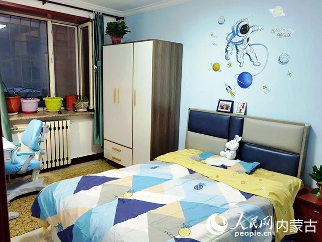 在對(duì)原有住房進(jìn)行規(guī)劃、設(shè)計(jì)后,施工隊(duì)開(kāi)始裝修,并配備必要的家具、臥具和學(xué)習(xí)生活用品。歷時(shí)半個(gè)多月,一間以藍(lán)色為主色調(diào)的小屋建成了?,F(xiàn)在,屬于浩博的那一半臥室,泛黃的臥室墻壁被粉刷成淡藍(lán)色,換了新的小床和衣柜,新添置的書(shū)桌上擺滿(mǎn)了課外書(shū),看起來(lái)整潔又溫馨。