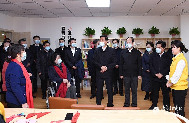 1月22日上午,國務(wù)委員王勇在民政部黨組書記、部長李紀(jì)恒,中國殘聯(lián)主席張海迪,自治區(qū)黨委書記、人大常委會主任石泰峰的陪同下,來到呼和浩特市賽罕區(qū)人民路街道仕奇居家和社區(qū)養(yǎng)老服務(wù)綜合體,走訪了解養(yǎng)老服務(wù)工作。內(nèi)蒙古日報社融媒體記者袁永紅攝