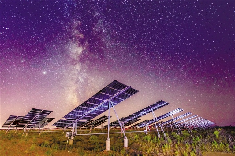 駿馬奔騰似潮涌,一日千里獨行空。庫布其沙漠腹地,由196320塊藍色光伏板組成的駿馬圖栩栩如生,格外吸睛。內(nèi)蒙古現(xiàn)代能源經(jīng)濟,一如這昂首奔騰的駿馬,向著“雙碳”目標奮蹄疾馳。(記者 許曉嵐 康麗娜)