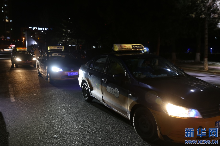 2月20日晚9點,前往指定地點運送樣本的出租車排起了長隊,完成這一次運送,司機們當天的任務就完成了。新華網發(fā) 李倩攝