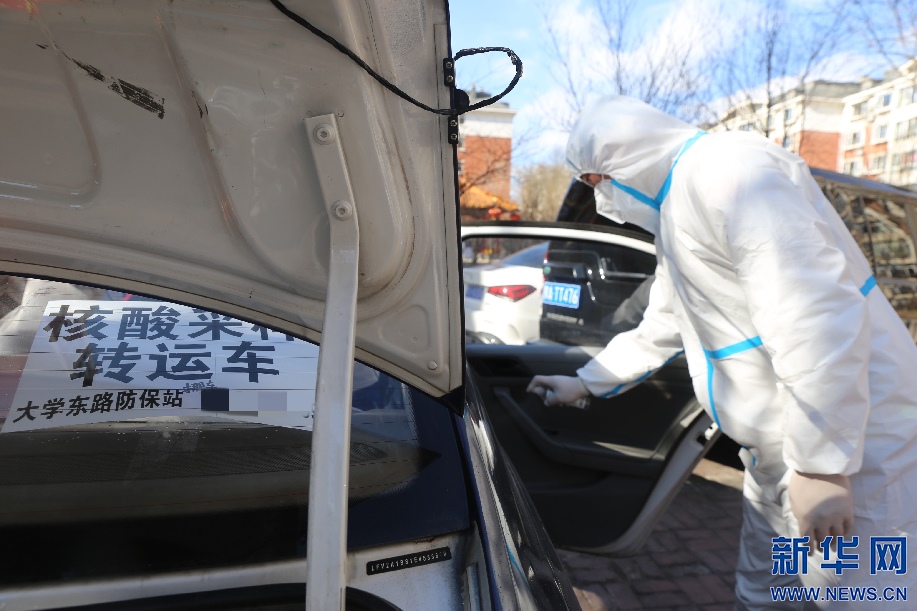 到達核酸采樣點后,籍東斌在工作人員取樣本間隙對車輛進行消殺。核酸樣本轉運存在著一定風險性,籍東斌說,只要按要求做好防護,按規(guī)定完成工作,就沒什么問題。新華網發(fā) 李倩攝