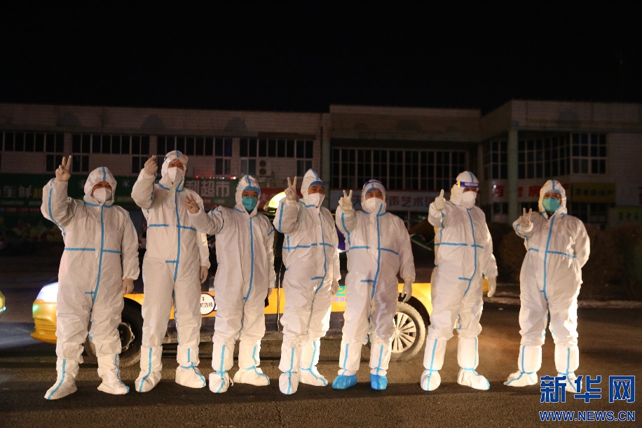 收工之前,現(xiàn)場部分志愿者司機們打出代表勝利的手勢,希望疫情早日散去,青城重現(xiàn)活力。新華網發(fā) 李倩攝