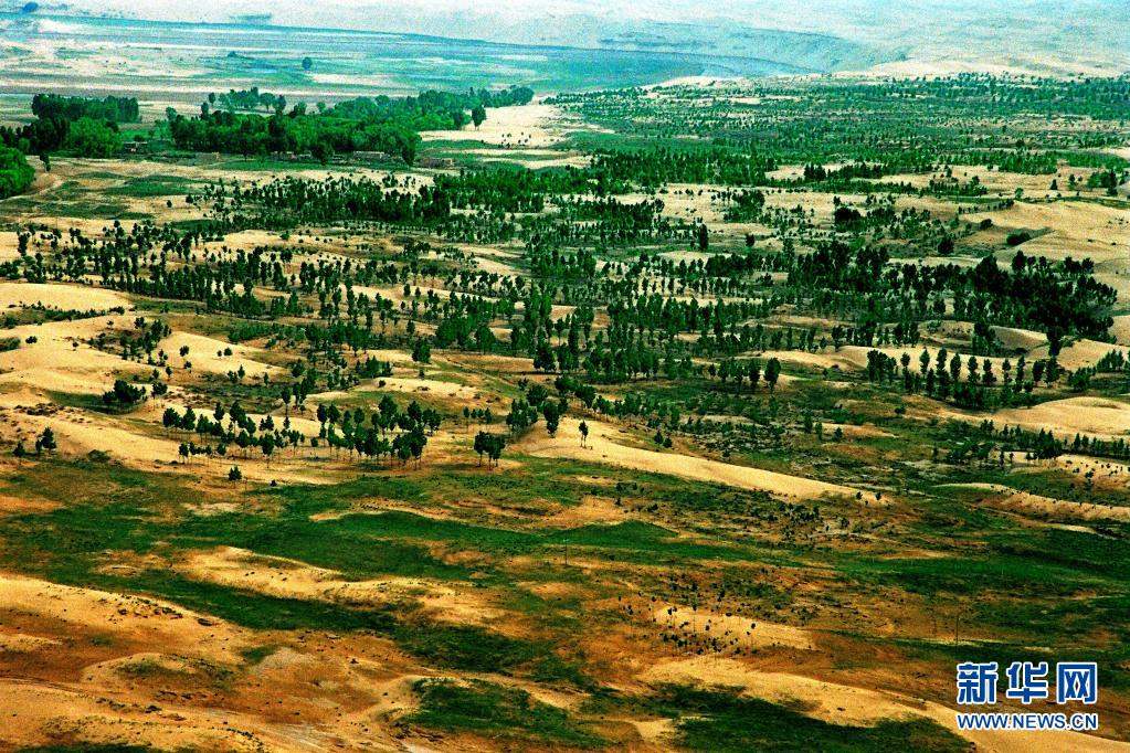 經(jīng)多年生態(tài)治理,如今的庫布其沙漠逐步形成一道抵御風(fēng)沙、保持水土、護(hù)農(nóng)促牧的“綠色長城”。新華網(wǎng) 發(fā)(劉博侖 攝)
