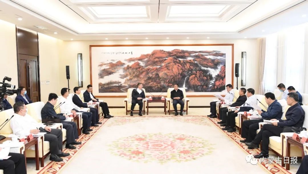 9月28日,自治區(qū)黨委書記孫紹騁在呼和浩特會(huì)見中國中煤能源集團(tuán)有限公司黨委書記、董事長王樹東一行。記者袁永紅攝