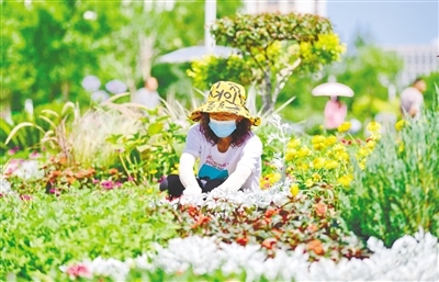 7月13日,工作人員在呼和浩特市草原絲綢之路文化公園維護(hù)、修整花境。據(jù)了解,呼和浩特市園林建設(shè)服務(wù)中心2022年在全市范圍內(nèi)打造19個(gè)花境,目前已全部建設(shè)完成。不同花境采取不同主題,景色錯(cuò)落有致,讓市民們走出家門就可欣賞唯美詩意的生態(tài)花境。(內(nèi)蒙古日?qǐng)?bào)社融媒體記者 王磊攝)