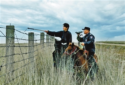護邊員圖門和兒子觀察邊境周邊情況。呼倫貝爾市新巴爾虎右旗貝爾蘇木退伍老兵圖門一家三代堅守祖國邊疆,被稱為北疆“紅色堡壘戶”。記者馬建荃攝