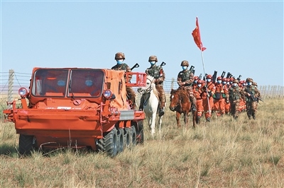 內(nèi)蒙古自治區(qū)森林消防總隊錫林郭勒盟支隊聯(lián)合解放軍邊防某連,在中蒙邊境一線開展督察檢查、防火宣傳等防火專項行動,守好邊境線。本報記者懷特烏勒斯攝