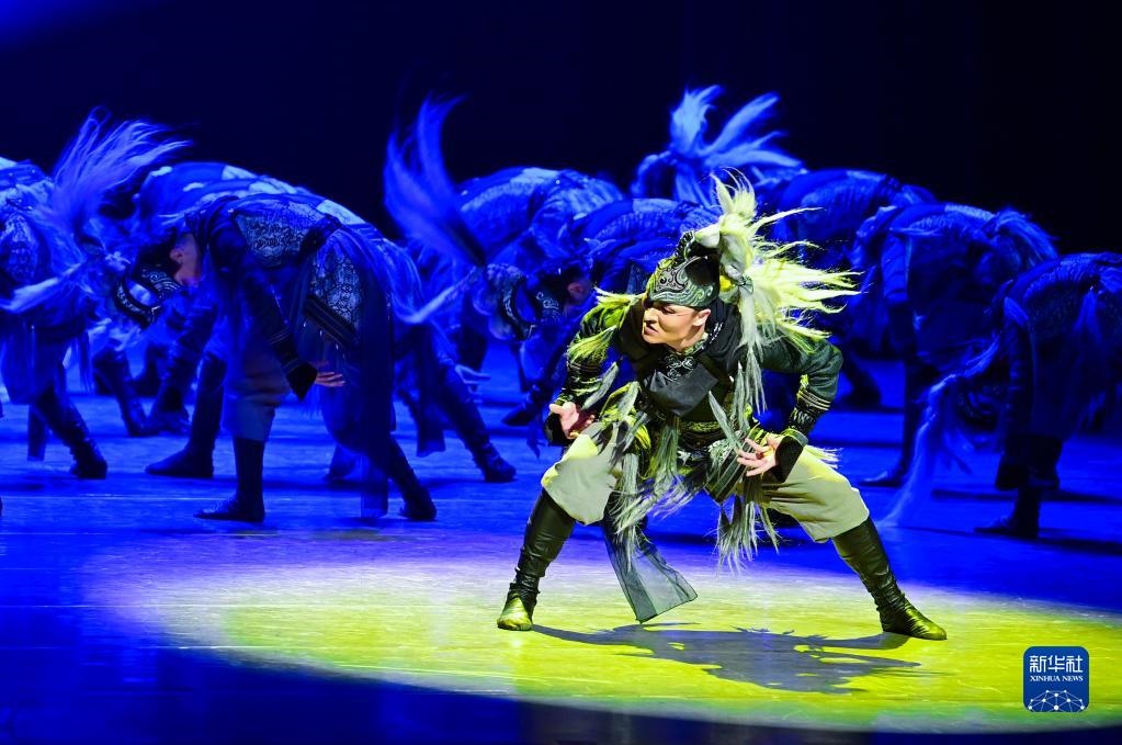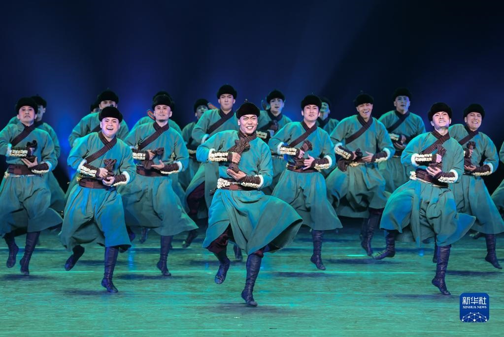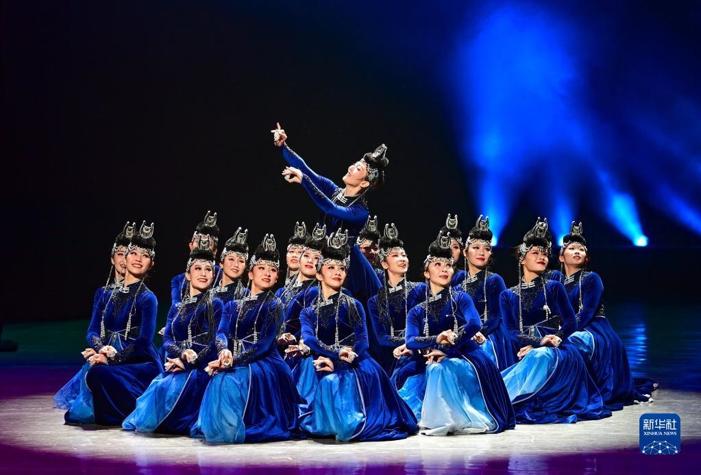 3月27日,內(nèi)蒙古自治區(qū)直屬烏蘭牧騎參賽演員表演群舞《風之馬》。新華社發(fā)(王正攝)