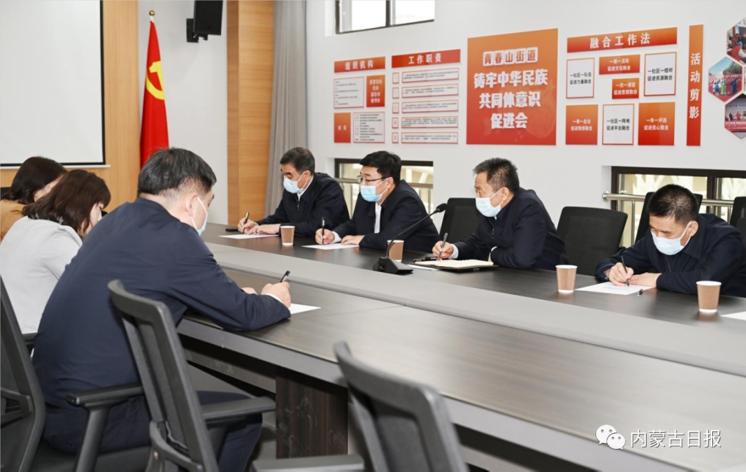 4月20日,孫紹騁在鄂爾多斯市康巴什區(qū)青春山街道神華康城社區(qū)與區(qū)、街道、社區(qū)干部深入交流,共同研究探討基層治理工作。內(nèi)蒙古日報(bào)社融媒體記者馬建荃攝
