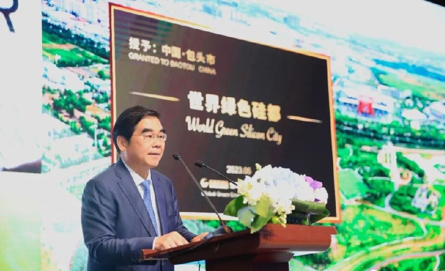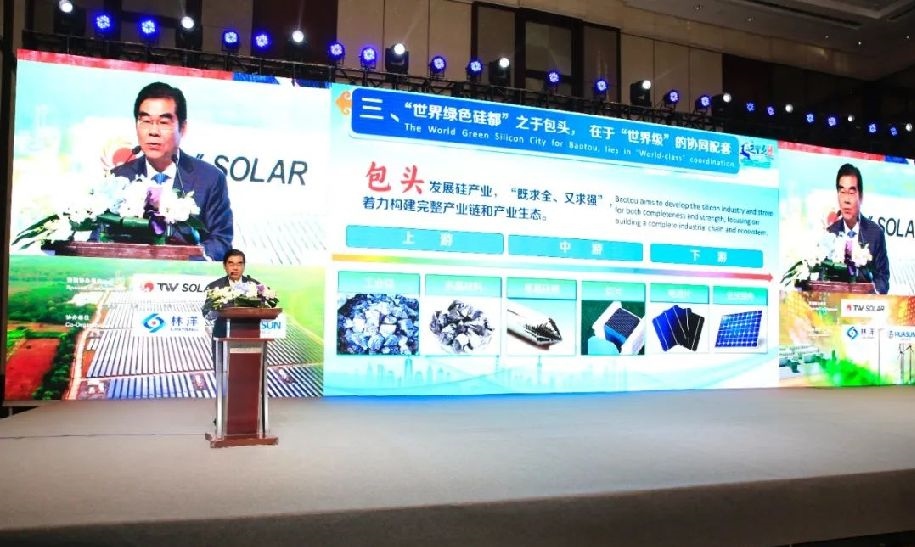 國際太陽能光伏與智慧能源大會是全球規(guī)模最大、最具影響力的專業(yè)化國際化光伏盛會,對于世界能源變革、全球生態(tài)環(huán)境改善具有重要引領作用。丁繡峰代表市委、市政府向大會的召開表示熱烈的祝賀,向所有關心支持包頭發(fā)展的企業(yè)家、專家學者和各界人士表示衷心的感謝。他說,全球綠色能源理事會為包頭市頒授“世界綠色硅都”稱號,我們深感榮幸、倍感振奮?!笆澜缇G色硅都”之于包頭,在于“世界級”的產業(yè)規(guī)模,2022年包頭成為全國首個光伏產業(yè)產值超千億元的城市,預計今年底多晶硅、單晶硅產能將分別占到全國的40%,2025年將分別占到全國的半壁江山、占到全球的45%,我們將繼續(xù)擴大光伏硅優(yōu)勢,建設全球最大的晶硅材料生產基地,打造萬億級光伏產業(yè)集群,建設千億級半導體產業(yè)集群和有機硅產業(yè)集群?!笆澜缇G色硅都”之于包頭,在于“世界級”的綠電支撐,包頭風光資源豐富,可為硅產業(yè)發(fā)展提供“綠色電、便宜電、可靠電”,到2025年全市光伏產業(yè)使用“綠電”比例將達到40%以上,為企業(yè)通過“碳足跡”認證、進軍歐盟等國際光伏市場拿到綠色通行證?!笆澜缇G色硅都”之于包頭,在于“世界級”的協(xié)同配套,包頭發(fā)展硅產業(yè)從一開始就本著“既求全、又求強”的原則,目前已形成從工業(yè)硅到多晶硅、單晶硅,再到切片、電池片、組件的完整光伏產業(yè)鏈,我們將繼續(xù)抓好產業(yè)成龍配套,保證光伏產業(yè)鏈各環(huán)節(jié)都有頭部企業(yè)集聚,使包頭成為全國乃至全球光伏產業(yè)鏈最完整、配套率最高的城市?!笆澜缇G色硅都”之于包頭,在于“世界級”的技術研發(fā),云集包頭的硅產業(yè)頭部企業(yè)都擁有著引領行業(yè)前沿的技術優(yōu)勢,是包頭硅產業(yè)屹立全球行業(yè)前沿的硬支撐,我們將加速創(chuàng)新鏈與產業(yè)鏈融合發(fā)展,使包頭成為具有全球影響力的硅產業(yè)先進技術研發(fā)中心、認證中心、檢測中心、推廣中心。