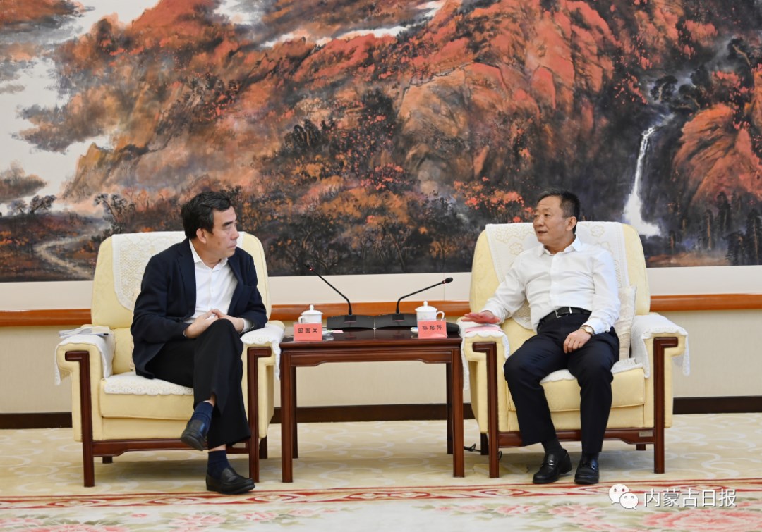 6月13日,自治區(qū)黨委書(shū)記孫紹騁在呼和浩特會(huì)見(jiàn)中國(guó)建設(shè)銀行黨委書(shū)記、董事長(zhǎng)田國(guó)立。