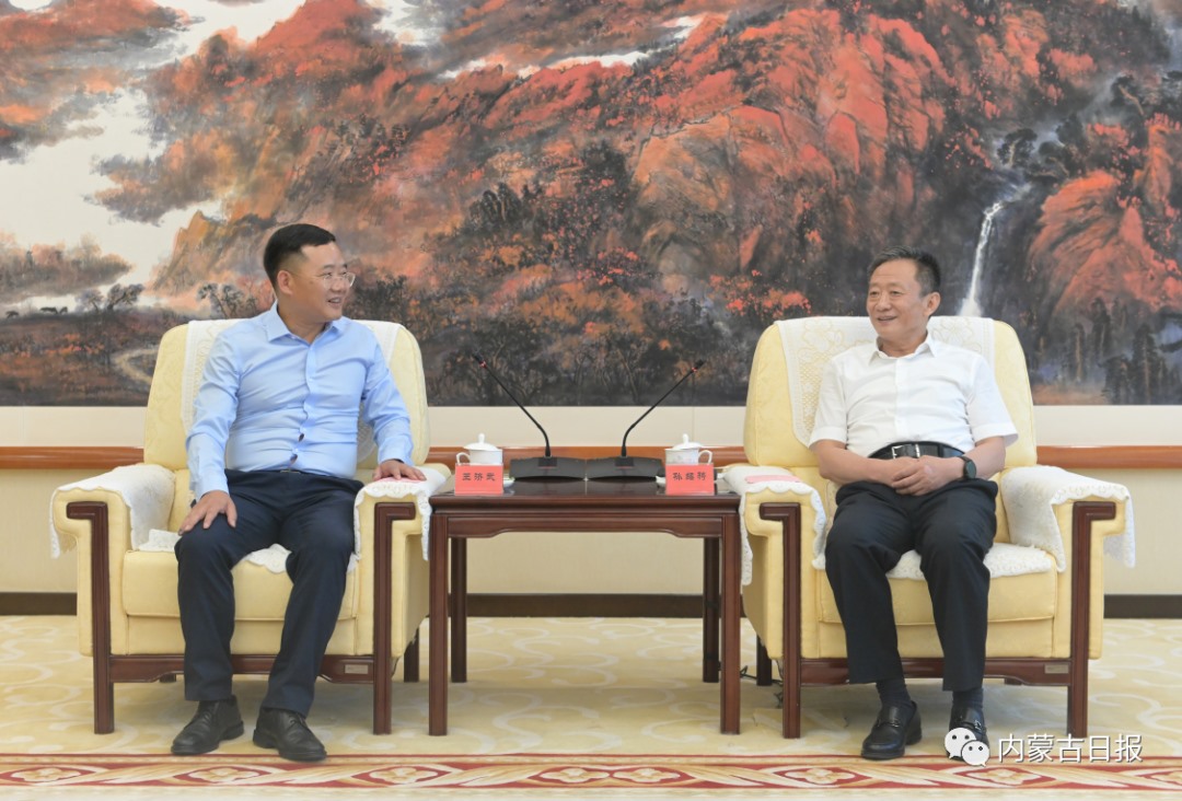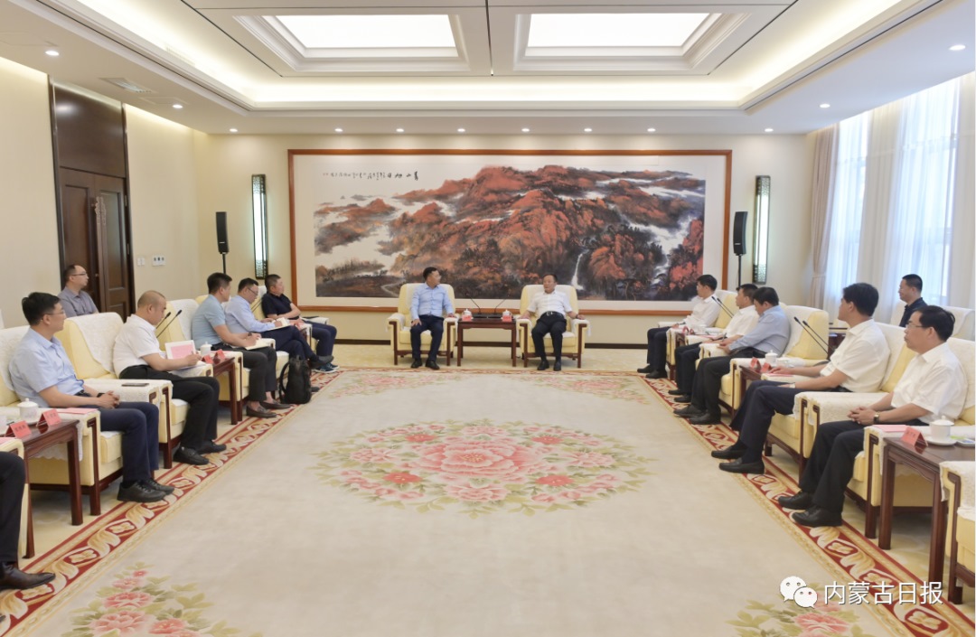 6月29日,自治區(qū)黨委書記孫紹騁在呼和浩特會(huì)見啟迪控股股份有限公司董事長(zhǎng)王濟(jì)武一行。內(nèi)蒙古日?qǐng)?bào)社融媒體記者 馬建荃 攝