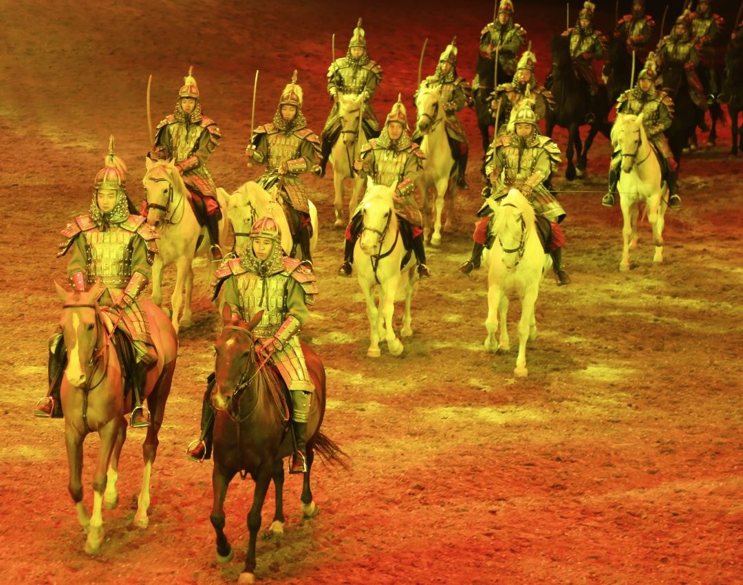 蒙古馬、汗血寶馬、盧西塔諾、弗里斯蘭、安達(dá)盧西亞、德保矮馬、阿拉伯馬等百余匹名馬、百名騎手組成龐大陣容的表演,整場(chǎng)演出恢宏震撼,充滿(mǎn)視覺(jué)沖擊力。