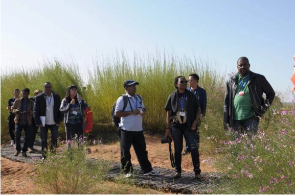 2017年9月,《聯(lián)合國防治荒漠化公約》第十三次締約方大會(huì)與會(huì)代表觀摩庫布其生態(tài)建設(shè)現(xiàn)場。