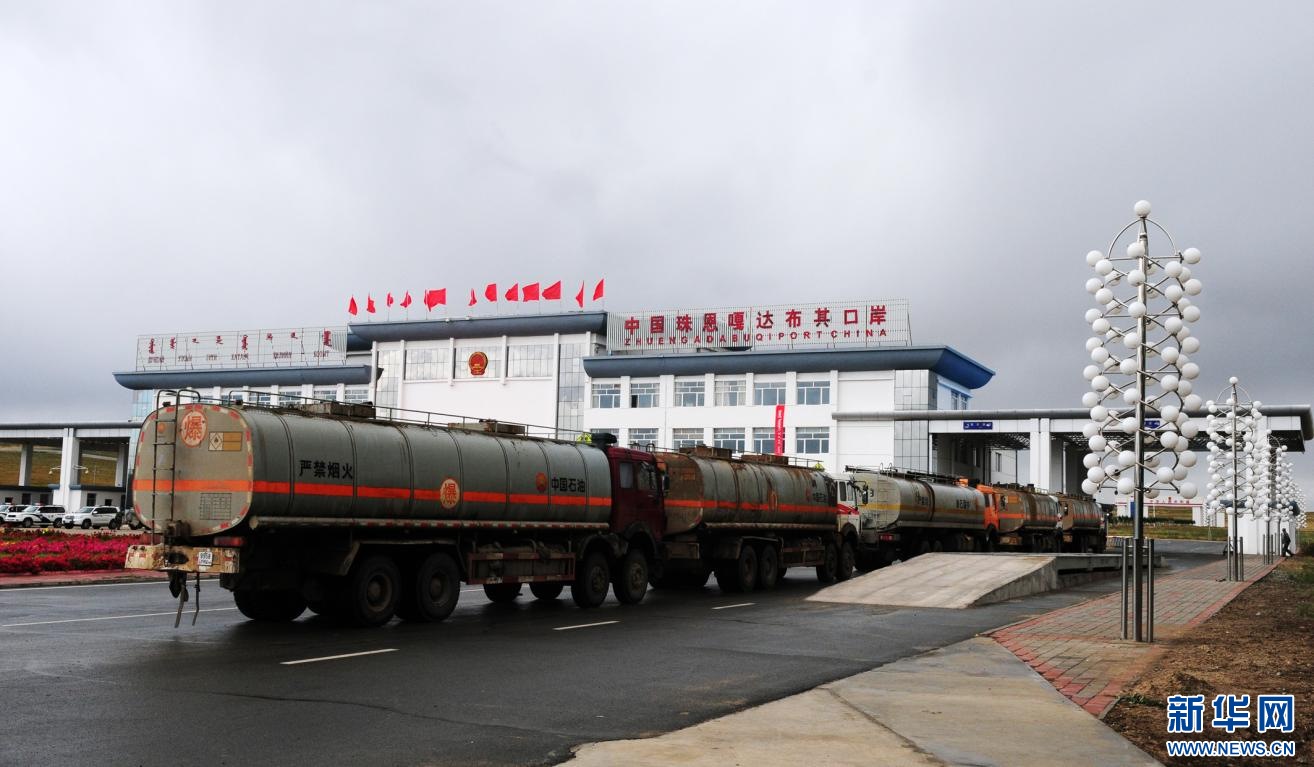 大卡車駛過珠恩嘎達布其口岸。資料圖 ??