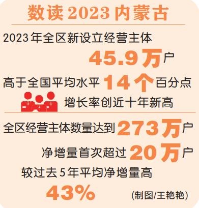 經(jīng)營主體迸發(fā)出新活力。2023年,自治區(qū)市場監(jiān)管局出臺便捷市場準(zhǔn)入助力招商引資九條措施,取消、下放行政審批事項26項,減少環(huán)節(jié)113個。個體工商戶設(shè)立登記等31項、589項具體項目實現(xiàn)全區(qū)通辦,申請人可以在“家門口”辦“外地事”,全區(qū)經(jīng)營主體呈現(xiàn)數(shù)量增長、結(jié)構(gòu)優(yōu)化、活躍度提升的良好態(tài)勢。2023年全區(qū)新設(shè)立經(jīng)營主體45.9萬戶,高于全國平均水平14個百分點,增長率創(chuàng)近十年新高;全區(qū)經(jīng)營主體數(shù)量達到273萬戶,凈增量首次超過20萬戶,較過去五年平均凈增量高43%。在培育壯大經(jīng)營主體上,集成金融、用工、創(chuàng)新等各領(lǐng)域15條硬措施落地,小微企業(yè)和個體工商戶總量分別增長7.59%和7.3%。在激發(fā)經(jīng)營主體創(chuàng)新活力上,推動“一站式”服務(wù)進園區(qū)、進企業(yè),服務(wù)企業(yè)44761家,減免費用、節(jié)約成本7154萬元?!懊伞弊謽?biāo)認證帶動377種產(chǎn)品實現(xiàn)增值,知識產(chǎn)權(quán)質(zhì)押融資達到48.21億元。