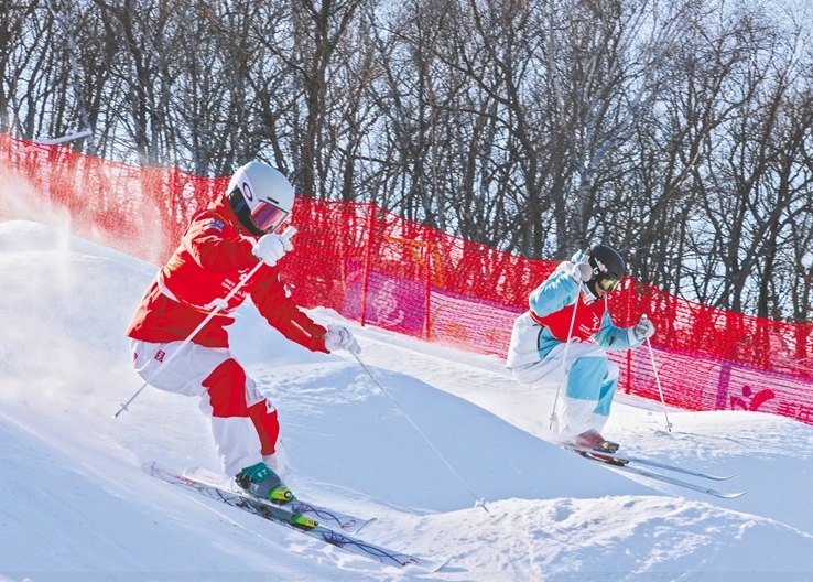 2月19日,在扎蘭屯金龍山滑雪場進行的“十四冬”自由式滑雪雪上技巧比賽圓滿收官,當天決出公開組女子、男子雙人雪上技巧比賽金牌。