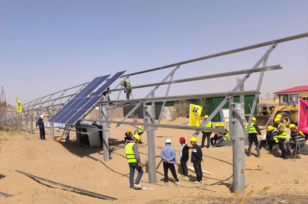 記者在新華林場民樂作業(yè)區(qū)看到,與其他作業(yè)區(qū)的造林治沙方式相比,這里既沒有栽樹,也沒有種草,而是在沙地里“栽”下了一個個水泥樁。葛文斌告訴記者:“這里是防沙治沙和風電光伏一體化工程項目區(qū)。‘栽’水泥樁就是為后期安裝光伏板、建設光伏電站做準備。在光伏板上發(fā)電的同時,我們還可以在光伏板下種植固沙植物,幫助地表植被恢復,達到既能發(fā)電‘生金’又能實現(xiàn)沙化土地縮減的雙重功效?!保ㄓ浾呃钤破?、侯維軼)
