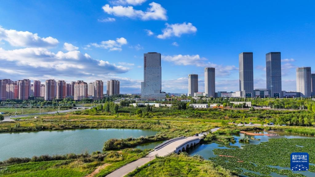 ??這是9月19日拍攝的鄂爾多斯市康巴什區(qū)一景(無人機(jī)照片)。