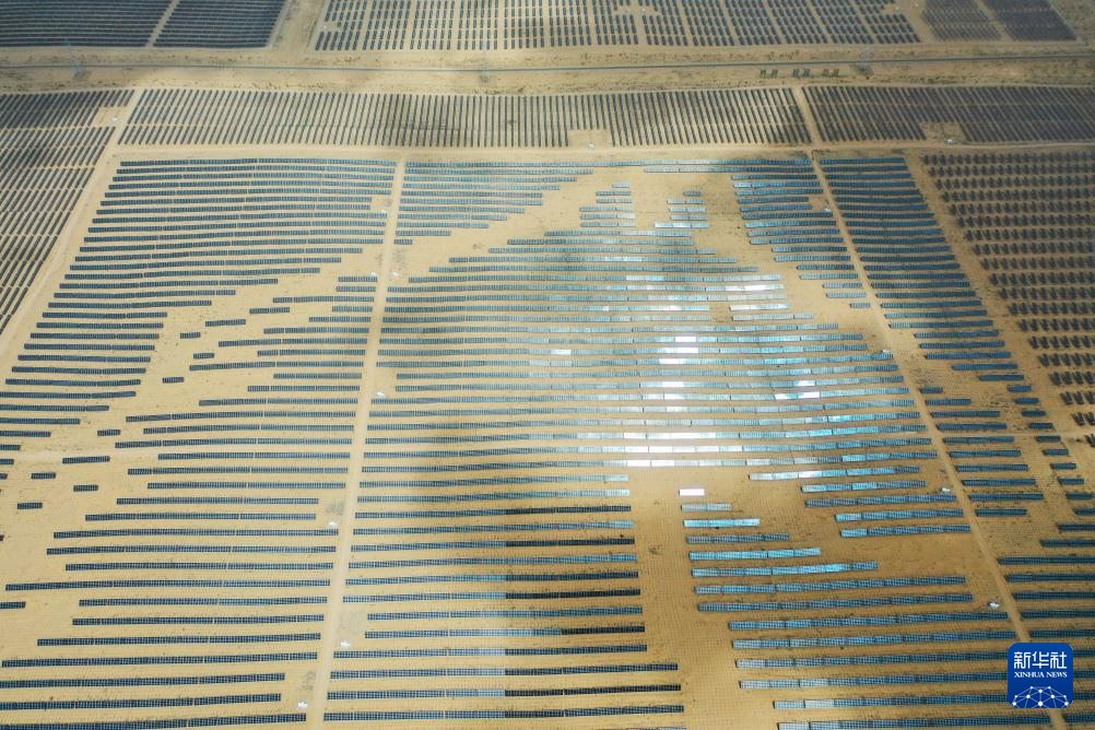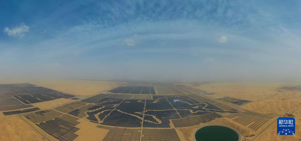 在內(nèi)蒙古自治區(qū)鄂爾多斯市境內(nèi)的庫(kù)布其沙漠里,一排排光伏板整齊地排列著,像是一幅藍(lán)色畫(huà)布在沙海中熠熠生輝。然而在過(guò)去,“黃沙遮天日,飛鳥(niǎo)無(wú)棲樹(shù)”是人們對(duì)這片沙海的印象。
