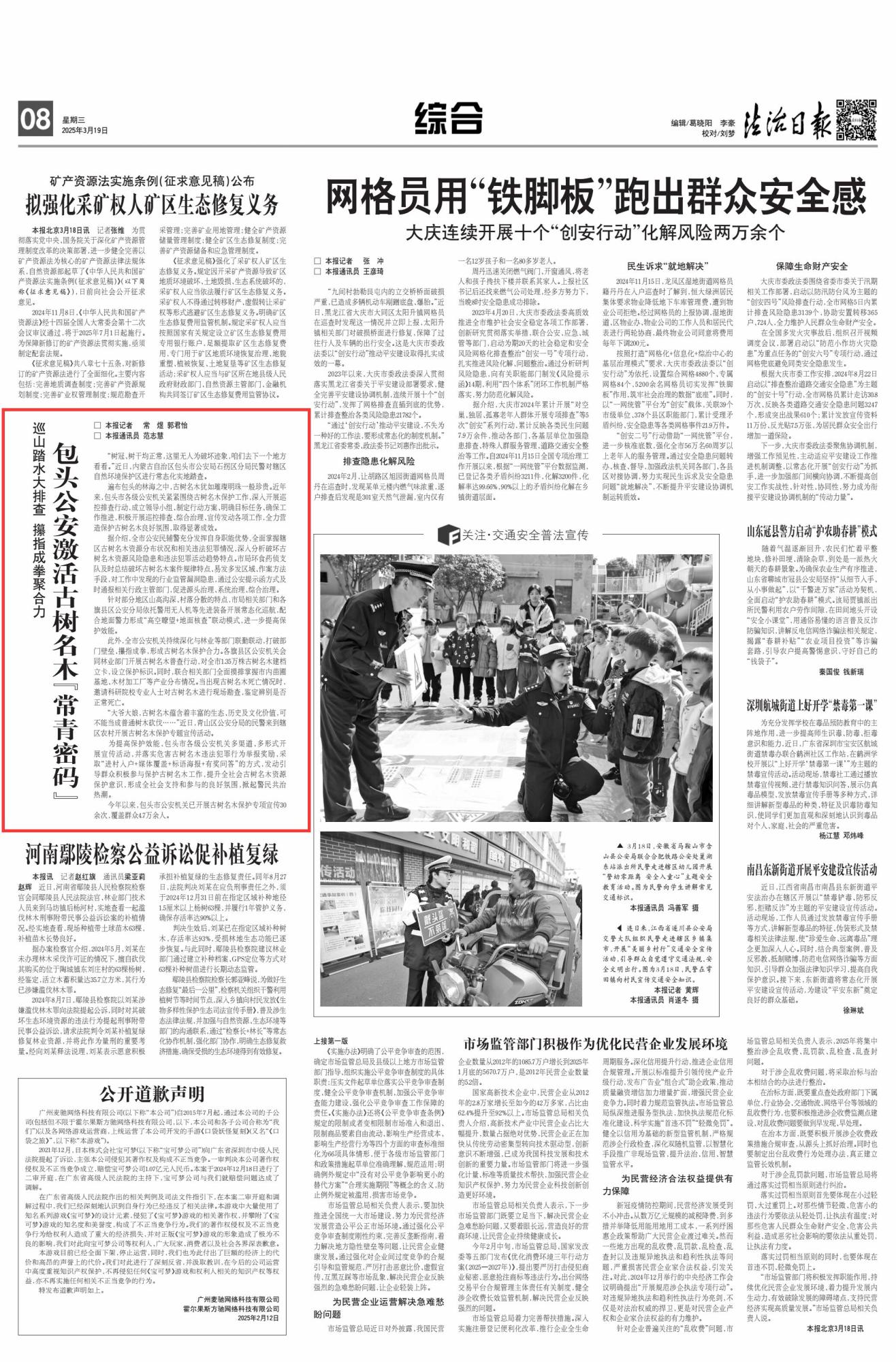 2025年3月19日,《法治日報》第8版刊發(fā)題為《巡山踏水大排查 攥指成拳聚合力 包頭公安激活古樹名木“常青密碼”》的文章,報道了近年來,包頭市各級公安機關(guān)緊緊圍繞古樹名木保護工作,深入開展巡控排查行動,成立領(lǐng)導(dǎo)小組、制定行動方案、明確目標(biāo)任務(wù)、確保工作推進,積極開展巡控排查、綜合治理、宣傳發(fā)動各項工作,全力營造保護古樹名木良好氛圍,取得顯著成效。