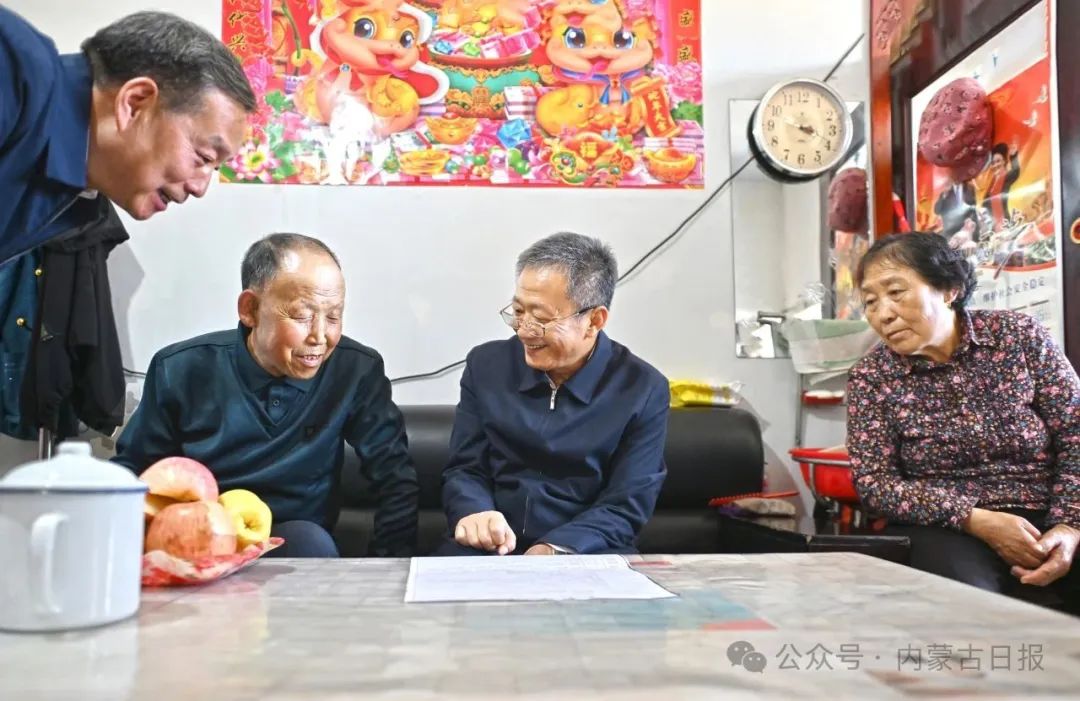 5月21日,自治區(qū)黨委書(shū)記孫紹騁在防返貧致貧監(jiān)測(cè)戶家中仔細(xì)察看惠民政策明白卡,詳細(xì)了解領(lǐng)取補(bǔ)貼情況。草原云·內(nèi)蒙古新聞網(wǎng)記者 馬建兵 攝