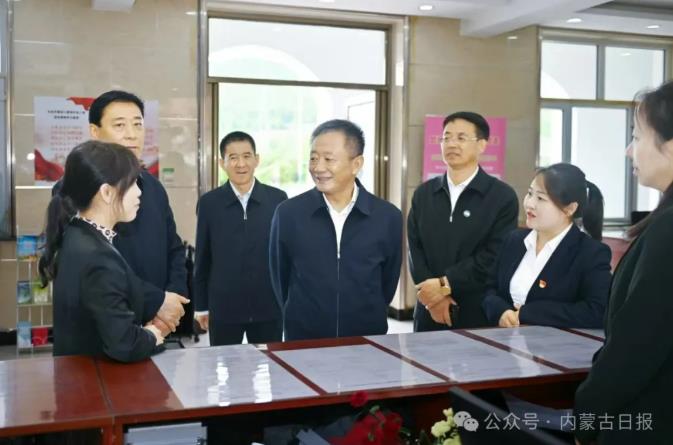 6月16日,自治區(qū)黨委書記孫紹騁來(lái)到阿爾山市政務(wù)服務(wù)和大數(shù)據(jù)中心,同辦事群眾和工作人員進(jìn)行交流,實(shí)地了解基層職能職責(zé)、減負(fù)效果等情況。草原云·內(nèi)蒙古新聞網(wǎng)記者