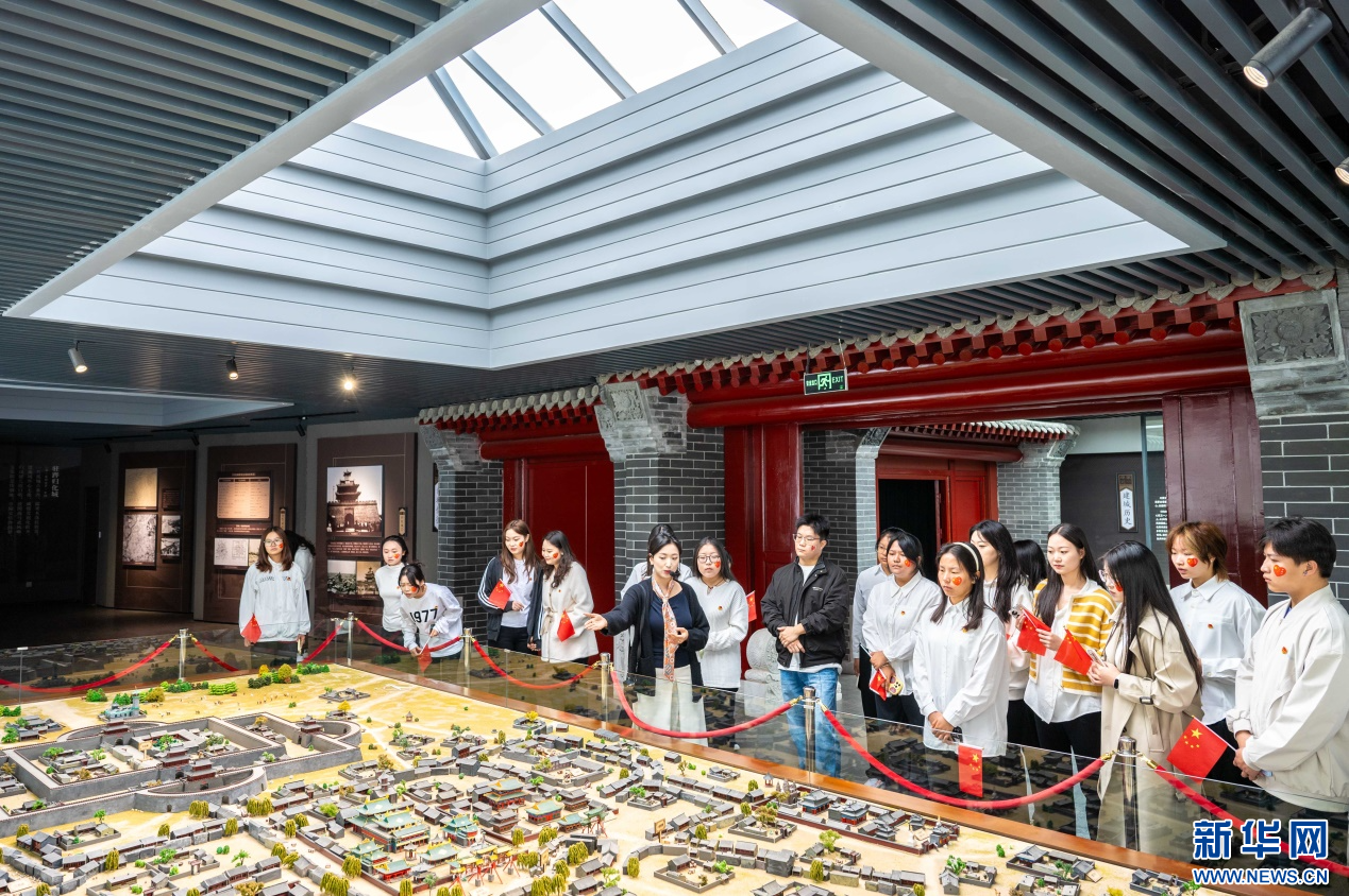 ??10月1日,內(nèi)蒙古師范大學(xué)馬克思主義學(xué)院的學(xué)子們在歸化城展示館參觀研學(xué)。新華網(wǎng)發(fā)(丁根厚 攝)
