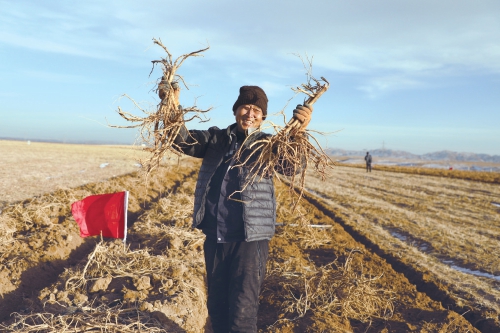 深秋時節(jié),內(nèi)蒙古自治區(qū)包頭市固陽縣迎來黃芪豐收季。金山鎮(zhèn)二社村潤植豐產(chǎn)農(nóng)民專業(yè)合作社的萬畝種植基地內(nèi)藥香彌漫,農(nóng)戶嫻熟地采挖著一根根飽滿的黃芪,臉上滿是豐收的喜悅?!拔覀兊狞S芪品質好,在市場上很受歡迎?!焙献魃缲撠熑烁邼櫜抛院赖卣f。