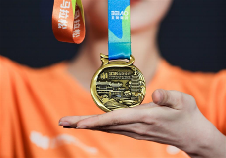 在新聞發(fā)布會(huì)上,賽事組委會(huì)還發(fā)布了本屆賽事的獎(jiǎng)牌和服裝。獎(jiǎng)牌名為“運(yùn)河逐夢”,意為歡迎全國各地的跑友來北京城市副中心運(yùn)河畔發(fā)展創(chuàng)業(yè)、追逐夢想。賽事服裝主色調(diào)橙色彰顯屬于馬拉松運(yùn)動(dòng)的青春活力,寓有馬到“橙”功之意。