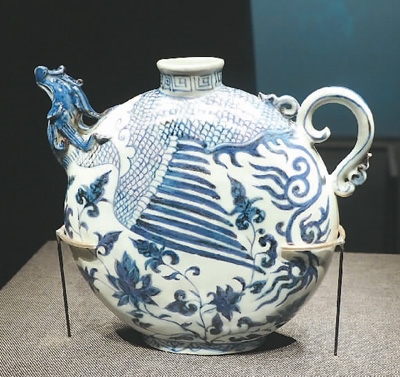 元青花鳳首扁壺。 杜建坡攝