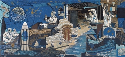 “大國(guó)重器”亮點(diǎn)紛呈,脫貧攻堅(jiān)成就舉世矚目,這些時(shí)代新象都在展覽中得到體現(xiàn)。例如,張輝君油畫《蛟龍入?!贰⑸秤绤R版畫《北斗》等作品,折射出我國(guó)科技自主創(chuàng)新能力不斷提升。孔紫中國(guó)畫《戈壁灘》和劉云中國(guó)畫《美麗鄉(xiāng)村》,分別借助植樹造林的人物群像塑造、新農(nóng)村景觀的宏闊描繪,展現(xiàn)了彪炳史冊(cè)的人間奇跡。