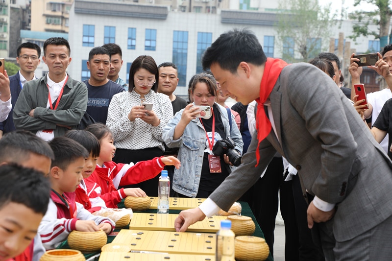 人民網(wǎng)銅仁5月15日電 (記者李乃妍)5月14日,第十屆中國女子圍棋甲級聯(lián)賽希望教室捐贈(zèng)儀式和指導(dǎo)棋活動(dòng)在銅仁市梵凈書院進(jìn)行,中國圍棋協(xié)會(huì)主席林建超等出席活動(dòng)并發(fā)言。世界冠軍古力、孔杰、馬曉春等與當(dāng)?shù)匦∑逋轮笇?dǎo)棋。