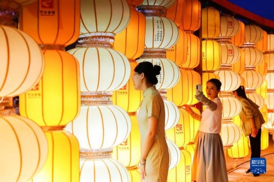 當(dāng)日,位于甘肅省蘭州市西固區(qū)黃河岸邊的河口古鎮(zhèn)“黃河燈展”正式亮燈。此次燈展以“河口耀千年·絲路映萬古”為主題,各類燈組交相輝映,吸引眾多游客前來游覽。此次燈展將持續(xù)到10月底。燈展活動期間,河口古鎮(zhèn)還將舉辦盛裝巡游等活動,為游客帶來豐富的參觀體驗(yàn)。
