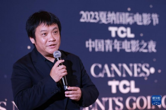 5月19日,在法國戛納,中國青年電影全球推廣計劃推廣大使、導演寧浩在“中國青年電影之夜”活動上致辭。