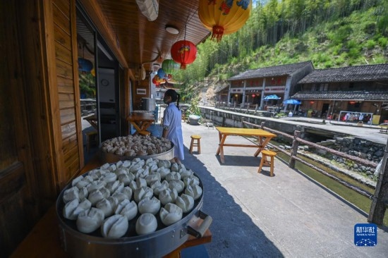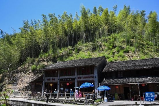 5月30日,游客在布袋坑村里游覽。