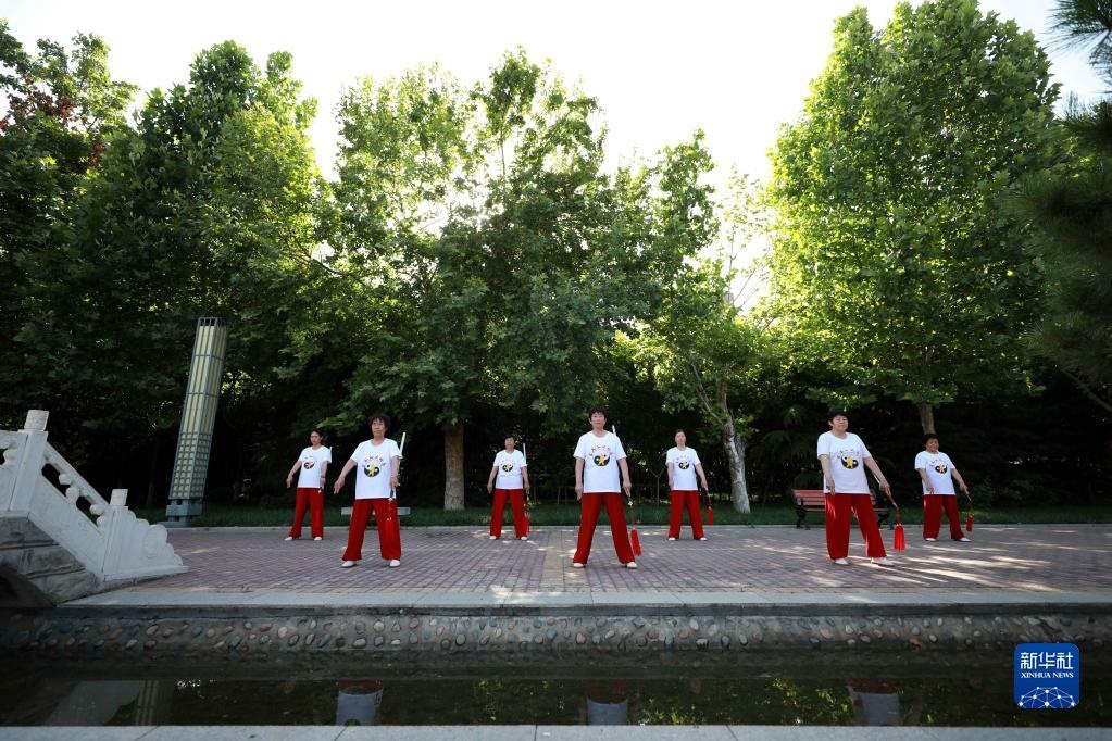 6月9日,太極拳愛好者在河北省邢臺市任澤區(qū)人民廣場展示王其和太極拳。