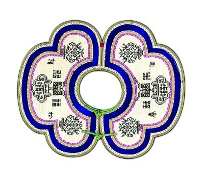 依據(jù)工藝、地域、民族的不同,織繡印染單元分為織繡、印染和少數(shù)民族工藝三類,品種豐富,工藝精美,兼顧手作與機制。在織繡中,南京云錦織造復雜,圖案華美;五彩繽紛的成都蜀錦以染色熟絲織造,質(zhì)地堅韌;蘇州漳緞以漳絨織造,富麗華貴;蘇州緙絲則采用通經(jīng)斷緯工藝與博古圖案,極盡工巧。刺繡展品以繡有吉祥圖案的日用品為主,如山西“打子繡錢袋”繡獅子滾繡球圖案,寓意好事不到頭;蘇州“金地拉鎖繡扇套”繡孔雀開屏與鳳求凰圖案,祈愿美好愛情。藍印花布產(chǎn)地多,應用廣,多采用吉祥圖案,既有祈愿幼兒健康成長的“虎戲五毒紋肚兜”“麒麟送子圖圍嘴”,亦有寓意平安富貴的“牡丹花瓶紋門簾”,還有“勞動生產(chǎn)”雙喜藍印花布褥面,倡導“女紡織家存千尺布,男耕田倉有萬石糧”。在少數(shù)民族工藝品中,“苗族刺繡花邊百褶裙”以黑色土布飾五彩裙擺,展現(xiàn)著苗族婦女“善歌舞,巧織繡”的傳統(tǒng)。