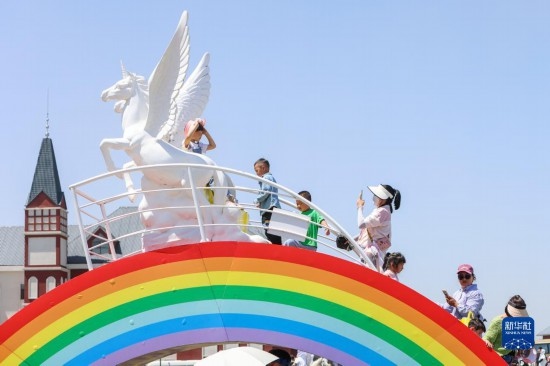 7月16日,游客在昭蘇縣天馬旅游文化園游玩。