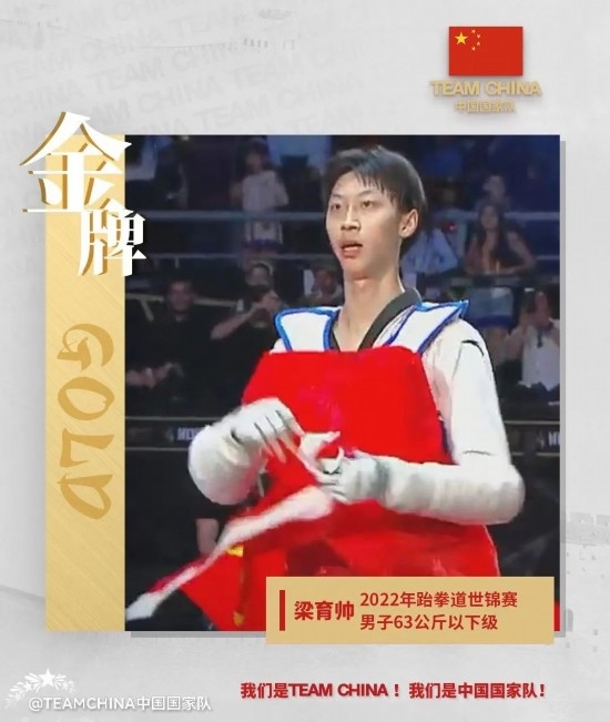 2018年,第一次代表國家隊(duì)出戰(zhàn)國際比賽。2019年,第一次踏上世錦賽的賽場。2022年,他在瓜達(dá)拉哈拉世錦賽中登頂,繼里約奧運(yùn)會冠軍趙帥之后,為中國跆拳道勇奪第二枚男子項(xiàng)目金牌!在這支正處于新老交替的國家隊(duì)中,梁育帥正在成長為領(lǐng)軍人物之一。