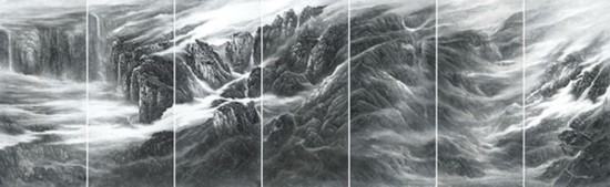 樂震文先生崇尚山石,醉心自然,作品注重筆墨、濃淡、疏密,空靈以及一石一峰,每幅作品氣脈貫通;而張弛先生更喜歡將自己的心靈感觸融入大自然,山水之間,其作品,時而表現(xiàn)水流直下、時而一瀉千里,或表現(xiàn)朝霧迷蒙、云海奇涌,時而萬壑松風、千枝搖曳,動靜相互結(jié)合,如詩如夢一般。兩位先生攜手走遍千山萬水,這對藝壇伉儷用畫筆“替山河立傳,為時代留影”,10月15日相約北京,遇見海派。
