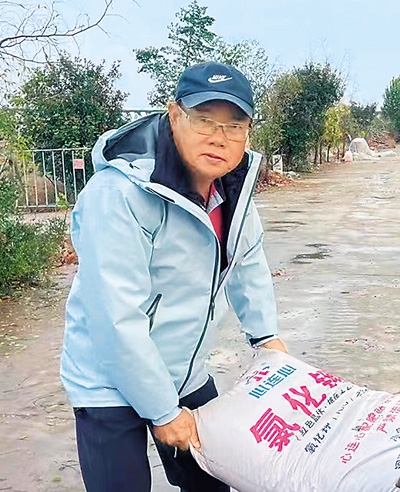 連萬生在園區(qū)里干農(nóng)活。 |