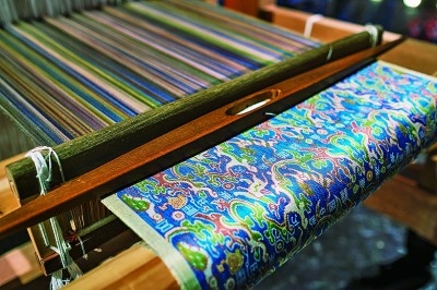 使用復(fù)原的老官山漢代織布機進行“五星出東方利中國”錦的復(fù)制。國家文物局供圖