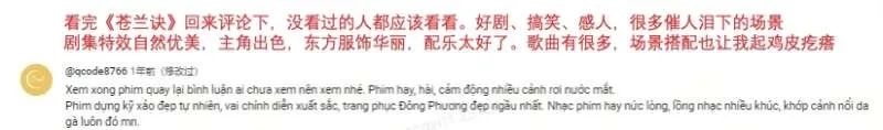 2023年前后,網(wǎng)劇《點燃我,溫暖你》和《長月燼明》發(fā)行至越南,迅速占據(jù)Vieon等越南本地視頻平臺首位。越南觀眾在評論區(qū)內(nèi)毫不吝嗇自己的喜愛:“我已經(jīng)看了第二遍,每次都會哭。”“它有驚人的演員陣容、服裝、風景,簡直太完美了!”